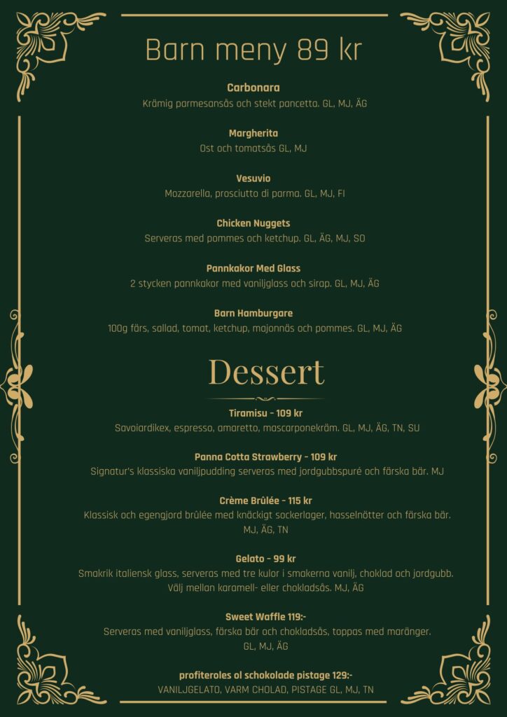 Signatur Östersund förenar europeiska smaker med stil och passion för att skapa en oförglömlig matupplevelse. Vår vision är att erbjuda en plats där lyx möter tradition.
